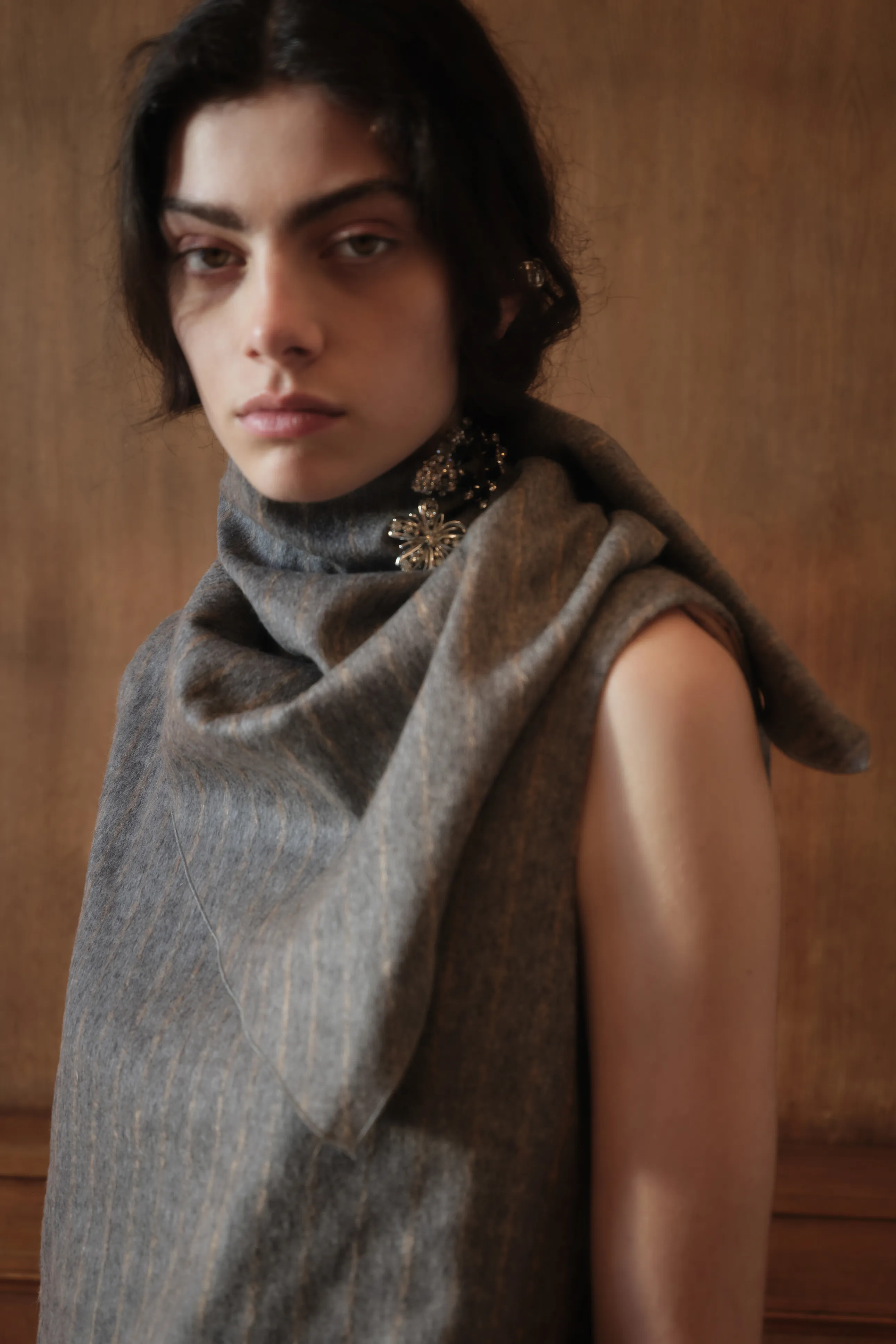 Pour celles qui n’ont pas envie de se retrouver avec le lobe d’oreille frôlant l’épaule, les broches sont aussi partout cet hiver. On les retrouve chez Carven sur un foulard épais noué façon cow-boy, pinçant le col d’un pull ou d’un blouson chez Miu Miu. Peu importe que vous ayez la paire, dépairaillées c’est encore mieux, du moment qu’elles sont deux.