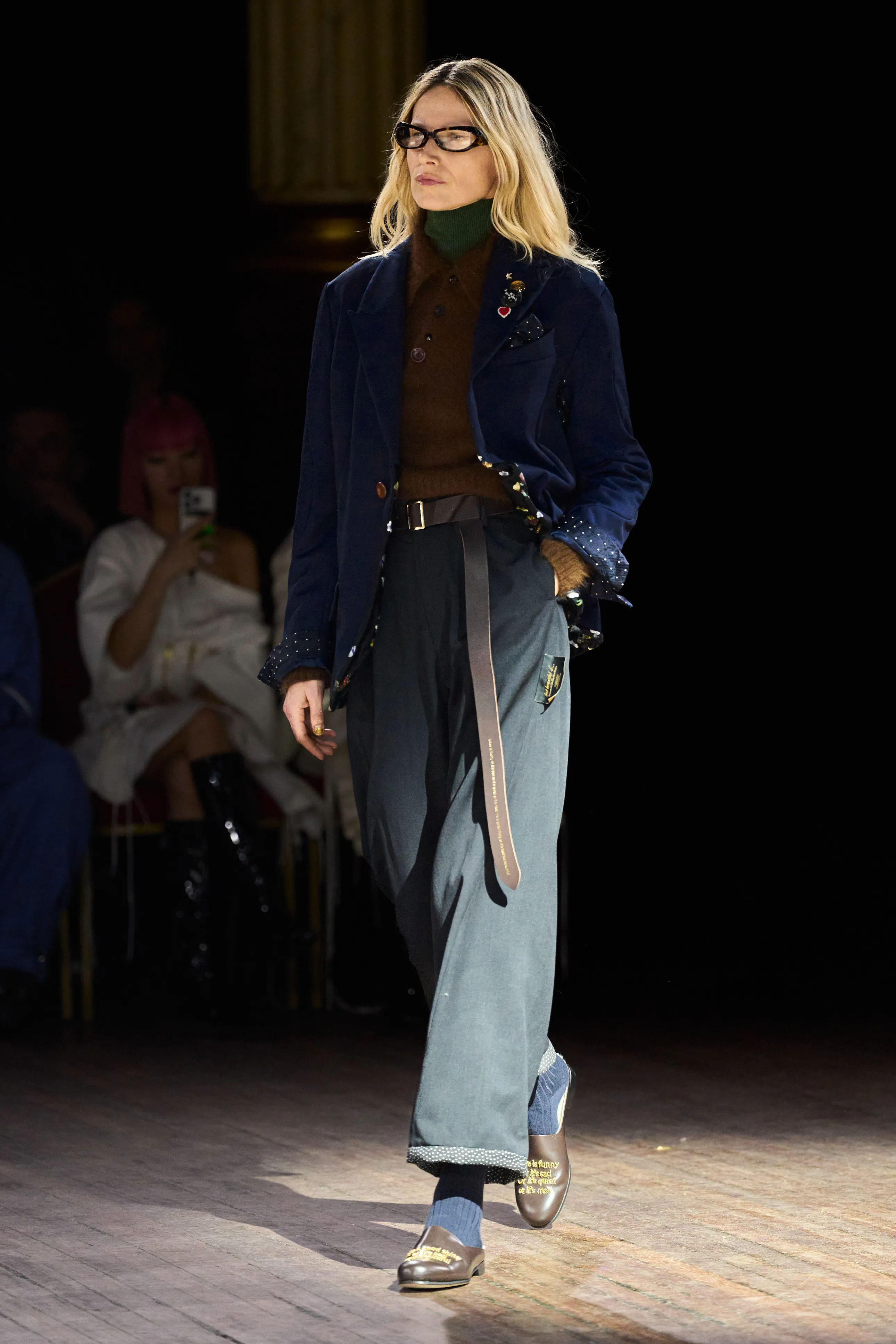 Si vous n’avez pas encore eu accès aux bijoux de la famille, vous pouvez vous inspirer d’Undercover et laisser dépasser d’un pull les manches de votre chemise (mais pas le col, toute la subtilité est là). Le défilé Undercover du génialissime Jun Takahashi est une mine d’idées de stylisme. On retient aussi la trop longue ceinture qui pend le long du pantalon, détail relevé aussi chez Louis Vuitton pour une même nonchalance.