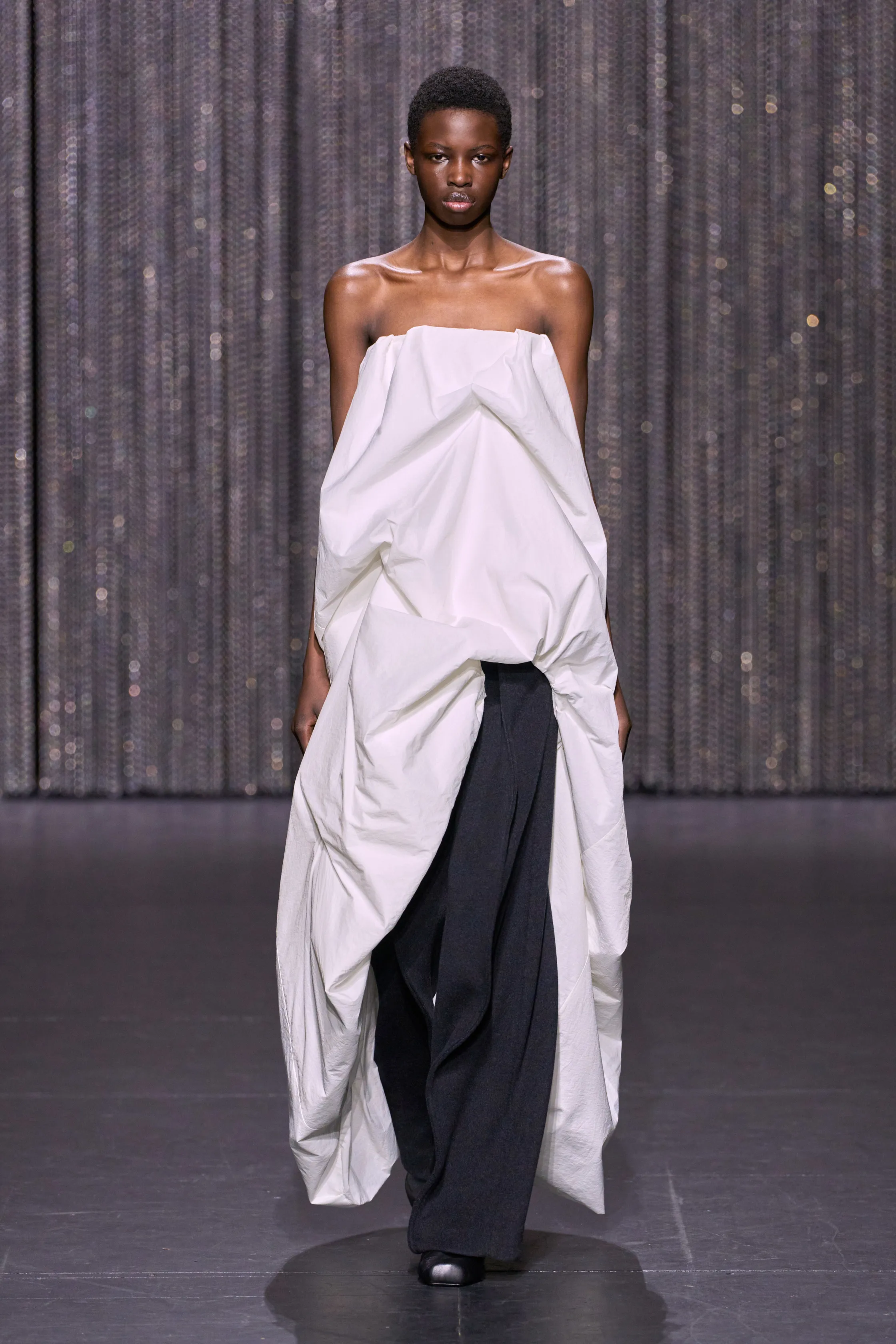 Mais une troisième voie est possible, celle de la beauté antique qui sublime le corps par des drapés (ALAIA). Pensez Madeleine Vionnet et son art du drapé mis au service du confort et du bien-être des femmes. On retrouve aujourd’hui non seulement son esthétisme mais l’envie de réinventer la structure du vêtement. À l’instar de Christo et Jeanne-Claude qui emballaient les monuments, le résultat est aussi innovant que le geste est technique. Comme un double hommage, au corps des femmes et à la maîtrise des couturiers.rières.