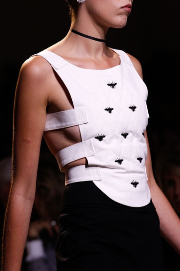 Là, l’uniforme devient un merveilleux exercice de style. Il commence subtilement dans le porté, choisir la taille qui donnera d’un marcel blanc un esprit sportif, si serré, ou au contraire désinvolte, si dégoulinant sur un soutien-gorge coloré. Puis la question de l’association qui invite au contraste. Rien de plus beau qu’un treillis un peu court sur des escarpins, qu’un top brodé ou à sequins sous une veste militaire. Ou encore un caban sur une robe dentelle. L’exercice est infini, raison pour laquelle les designers n’ont de cesse de réinventer ces pièces. D’ailleurs ce week-end j’ai emmené ma fille de 15 ans pour la première fois aux Puces de St Ouen. Elle s’est acheté son premier treillis kaki. Je suis repartie avec une veste de smoking homme écru qui sera parfaite sur mon débardeur et mon short treillis.
