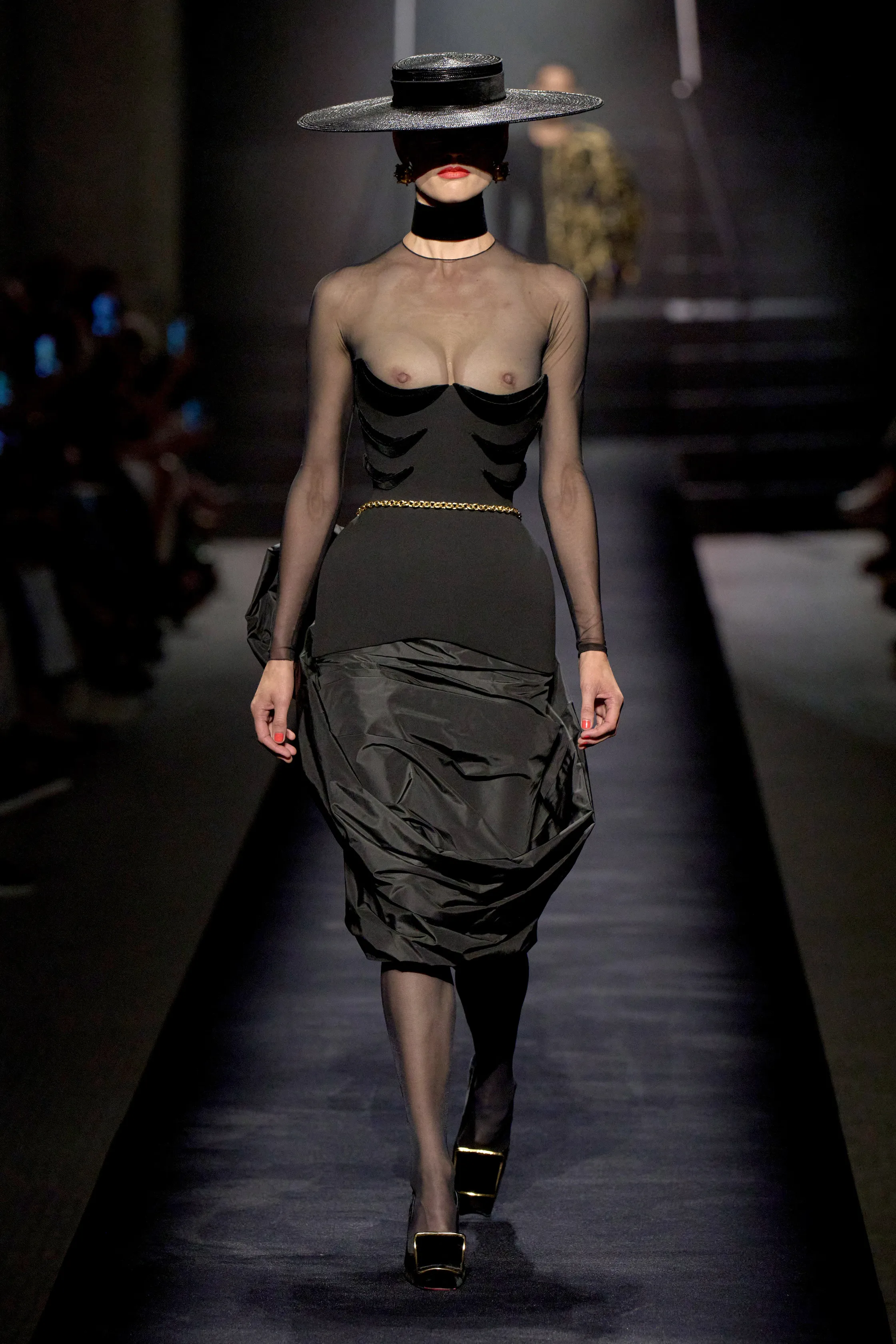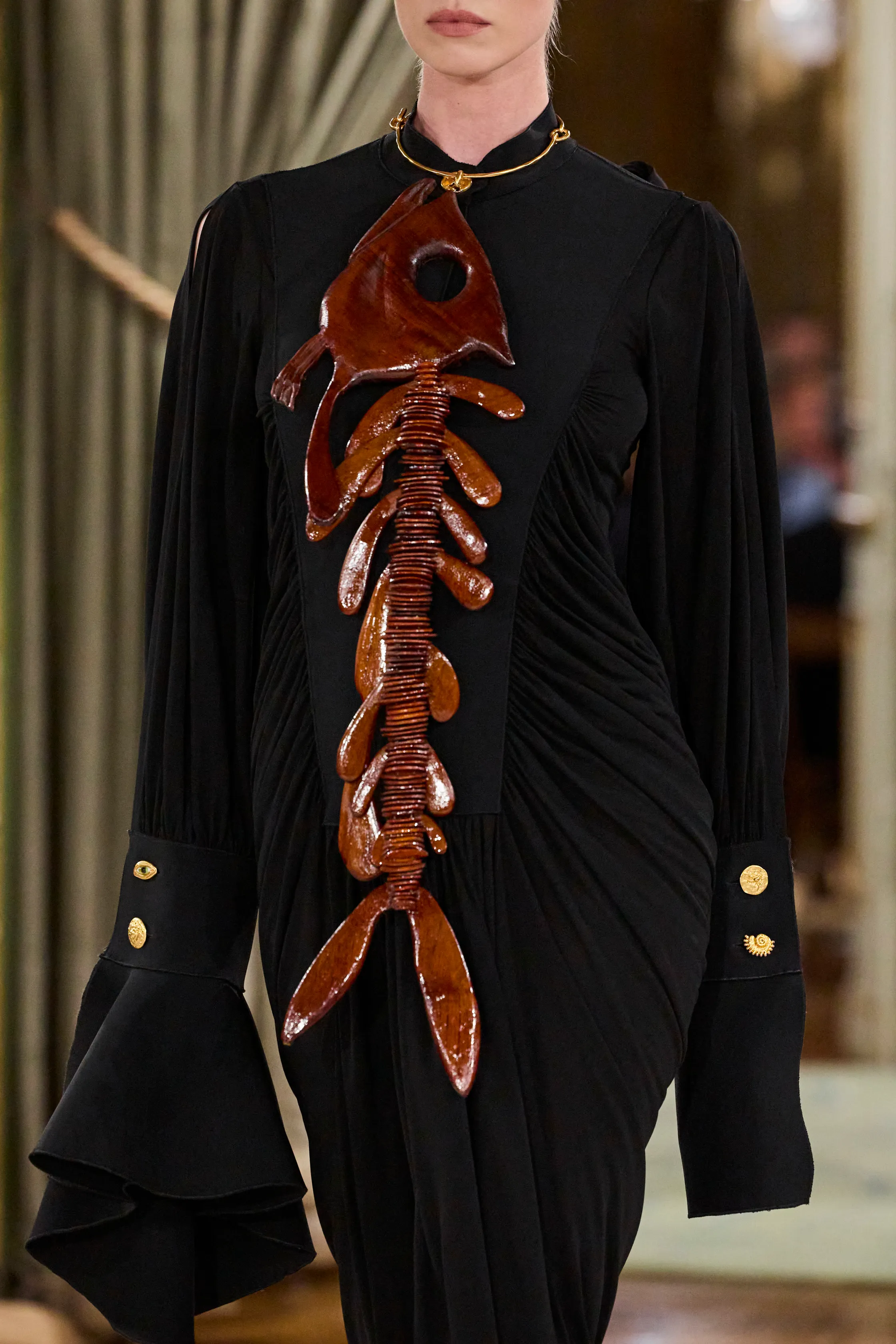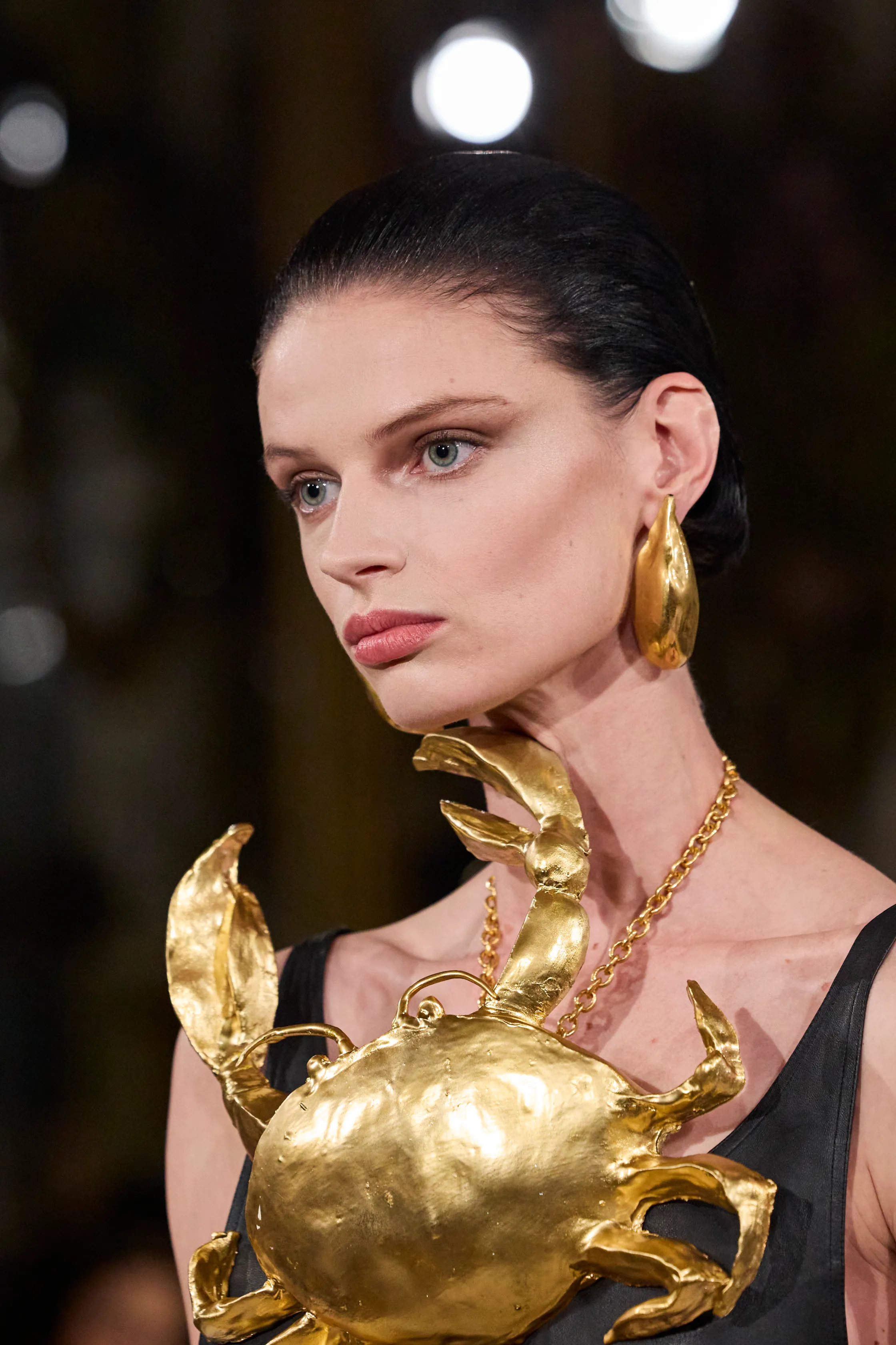 Aujourd’hui, le designer de Schiaparelli, Daniel Roseberry, est d’une fidélité totale à l’esprit surréaliste des origines. Collier oeil, boucles d’oreilles bouche, sac nez, escarpins orteils, robes poumons, cabas torse…quoi d’autre ? A-t-on fait le tour de l’anatomie ? L’ensemble bien doré pour être sûr qu’on ne manque pas le message.