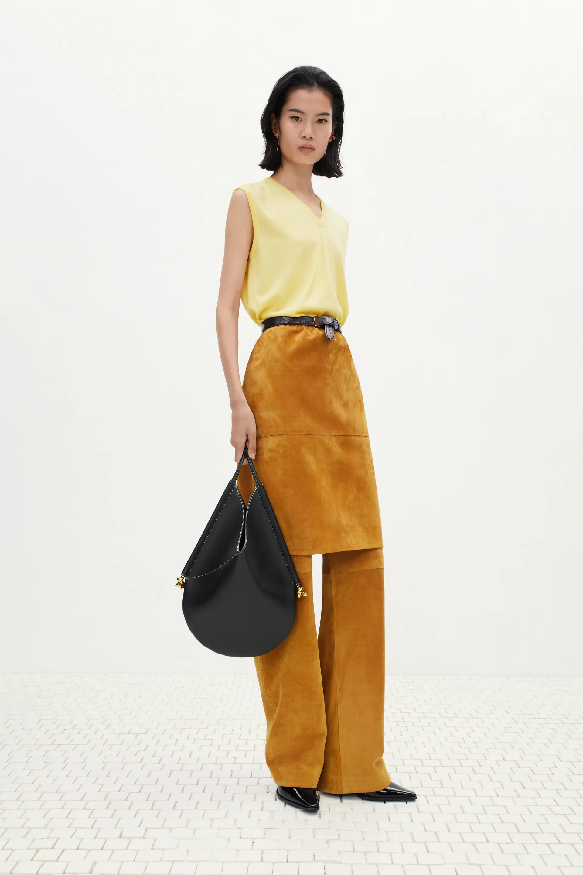 La tendance jupe sur pantalon (skirt+pants=skant) a fait des débuts timides pendant les Fashion Weeks de septembre 2022, notamment chez Fendi et Givenchy qui en avaient le statement de leurs défilés. Mais c’est vraiment en 2025, que la tendance va être partout, dans les boutiques comme dans la rue. À tel point que le skant est aussi le nom d’une pièce hybride, entre le jupe et la pantalon.